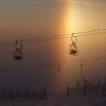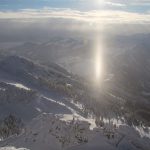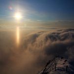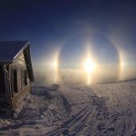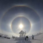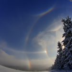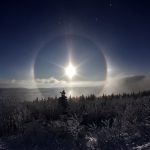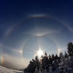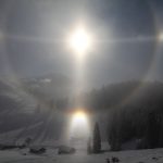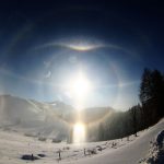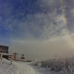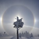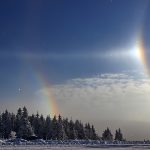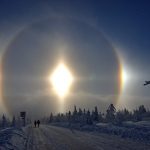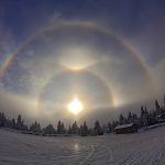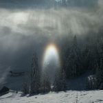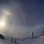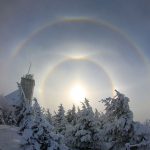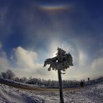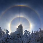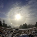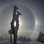 Ab einer Temperatur von etwa -5°C kann man bei Böhmischen Nebel mit etwas Glück zwischen Keilberg und Fichtelberg Eisnebelhalos beobachten. Der Böhmische Wind führt aus dem Böhmischen Becken sehr kalte und leicht staubhaltige, dunstige Nebelluft heran. An den zahlreichen Kondensationskeimen gefriert der Wasserdampf des Wolkennebels zu winzigsten Eiskristallen, an denen das Sonnenlicht gespiegelt oder gebrochen wird. Es entstehen je nach Kristallart (Plättchen oder Säulchen) und ihrer Lage in der Luft verschiedene weiße oder farbige Lichtflecken oder Bögen am Himmel. Derzeit sind etwa 50 Haloarten bekannt und viele von diesen konnten im Fichtelberg-Keilberg-Gebiet beobachtet werden. Aber auch in anderen Gebieten, vor allem an Passhöhen über nebelreichen Tälern oder in eisiger Luft auf Bergen können Eisnebelhalos auftreten.