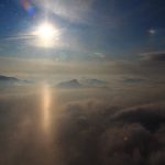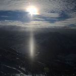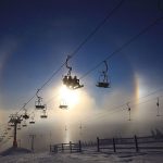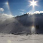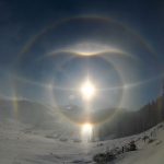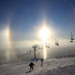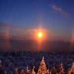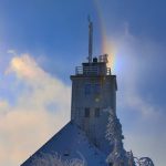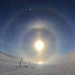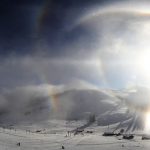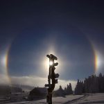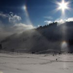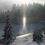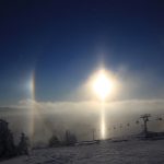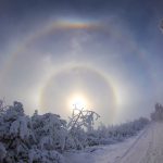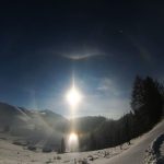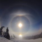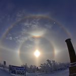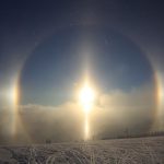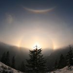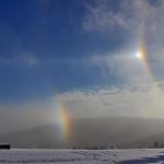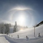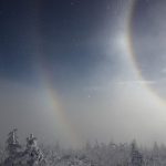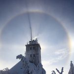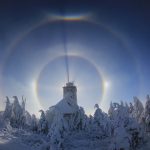 Ab einer Temperatur von etwa -5°C kann man bei Böhmischen Nebel mit etwas Glück zwischen Keilberg und Fichtelberg Eisnebelhalos beobachten. Der Böhmische Wind führt aus dem Böhmischen Becken sehr kalte und leicht staubhaltige, dunstige Nebelluft heran. An den zahlreichen Kondensationskeimen gefriert der Wasserdampf des Wolkennebels zu winzigsten Eiskristallen, an denen das Sonnenlicht gespiegelt oder gebrochen wird. Es entstehen je nach Kristallart (Plättchen oder Säulchen) und ihrer Lage in der Luft verschiedene weiße oder farbige Lichtflecken oder Bögen am Himmel. Derzeit sind etwa 50 Haloarten bekannt und viele von diesen konnten im Fichtelberg-Keilberg-Gebiet beobachtet werden. Aber auch in anderen Gebieten, vor allem an Passhöhen über nebelreichen Tälern oder in eisiger Luft auf Bergen können Eisnebelhalos auftreten.