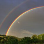 Ein Regenbogen entsteht um den Sonnengegenpunkt, wenn dort es dort regnet und gleichzeitig die Sonne scheint. Dann tritt das Sonnenlicht in den Regentropfen ein und wird am Tropfenrand gebrochen und in seine Spektralfarben zerlegt. Im Tropfen selbst finden Reflektionen statt, das heißt, der Strahl wird umgelenkt und tritt in bestimmten Winkeln wieder aus dem Tropfen aus. Bei einem Hauptregenbogen (primärer Regenbogen) findet eine Reflektion statt und es entsteht ein Regenbogenkreis mit einem Radius von ca. 42°. Zweifache Reflektion erzeugt den Nebenregenbogen (sekundärer Regenbogen) mit einer Radius von 51°.