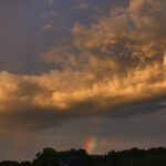 Ein Regenbogen entsteht um den Sonnengegenpunkt, wenn dort es dort regnet und gleichzeitig die Sonne scheint. Dann tritt das Sonnenlicht in den Regentropfen ein und wird am Tropfenrand gebrochen und in seine Spektralfarben zerlegt. Im Tropfen selbst finden Reflektionen statt, das heißt, der Strahl wird umgelenkt und tritt in bestimmten Winkeln wieder aus dem Tropfen aus. Bei einem Hauptregenbogen (primärer Regenbogen) findet eine Reflektion statt und es entsteht ein Regenbogenkreis mit einem Radius von ca. 42°. Zweifache Reflektion erzeugt den Nebenregenbogen (sekundärer Regenbogen) mit einer Radius von 51°.